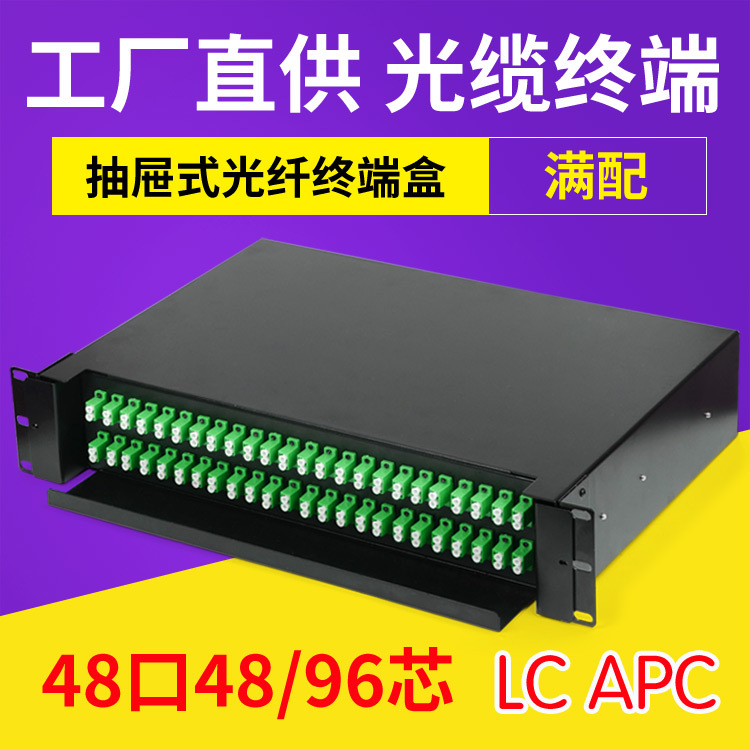 LC96 kotak terminal inti 48-port ECC bingkai distribusi serat optik radio dan kelas Televisi rel geser tarik tipe laci peleburan kabinet 19 inci