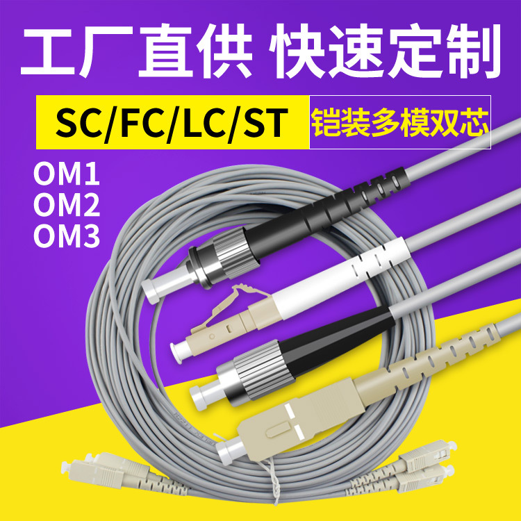 Jumper serat optik SC multi-mode lapis baja FC pigtail ST dual-core LC duplex 1 3 M 5 telecom-grade OM1 20 juta m 3