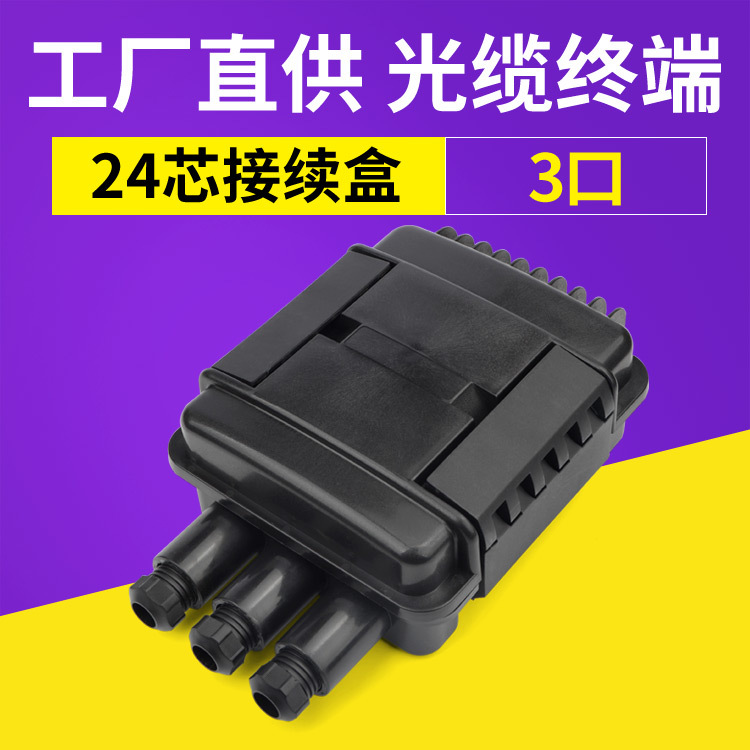Kotak konektor serat optik 24 inti, kotak konektor kabel optik horizontal 3-port Las atas kepala gantung dinding tahan air