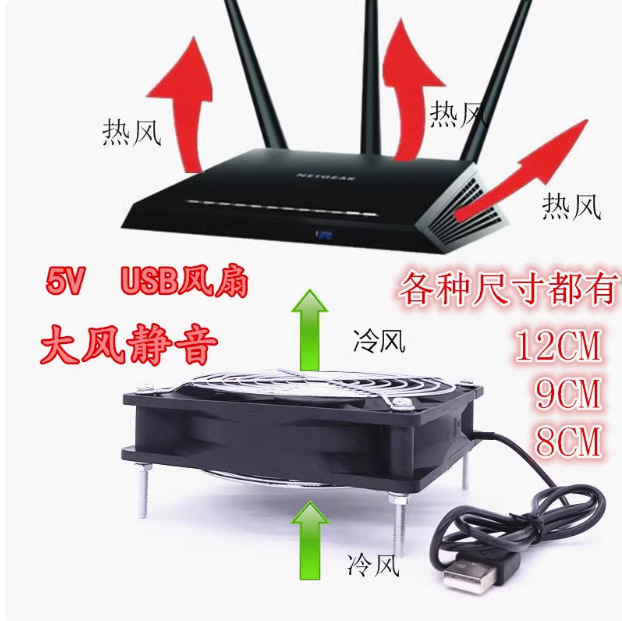 Cot Cat Top Box Diam Radiator Nirkabel Router 5V12CM Casing USB Kipas Pendingin