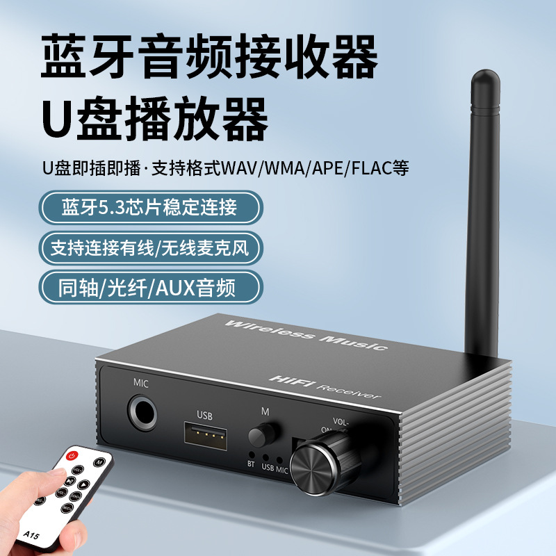 Penerima audio Bluetooth 5.3 serat optik koaksial, ke amplifier speaker lama, 6.5 mikrofon Karaoke pemutar U disk