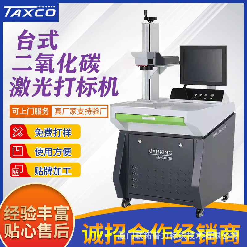 Mesin penanda laser desktop karbon dioksida otomatis, printer inkjet tanggal produksi logam kayu ukiran laser