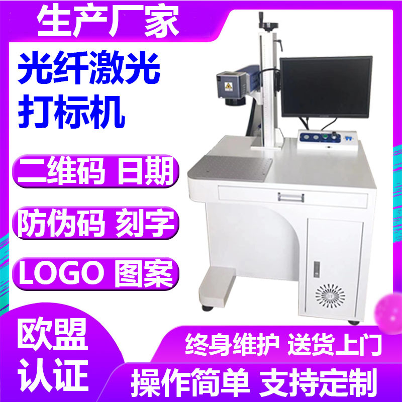 Mesin penanda laser serat laser, mesin pengkodean laser baja tahan karat logam desktop 20W, mesin ukiran laser