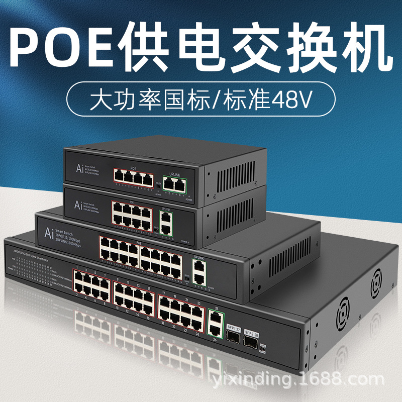 4/8/10/16/24 port POE saklar catu daya Gigabit 100 m Standar Nasional 48V pemantauan didedikasikan kompatibel dengan Dahua