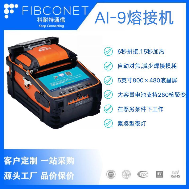 AI-9 mesin peleburan serat | 6 detik pengelasan kecepatan ekstrim kehilangan rendah definisi tinggi, baterai berkapasitas besar, perbaikan luar ruangan yang diperlukan