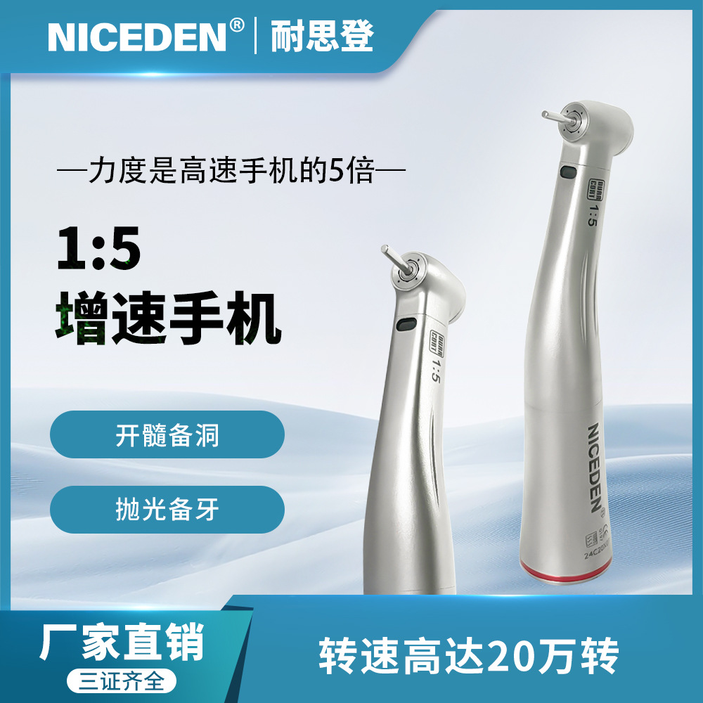 Motor listrik gigi Niceden 1:5 dengan handpiece serat optik, mesin melengkung penambah kecepatan untuk penggilingan, persiapan gigi, dan ekstraksi dengan torsi tinggi.