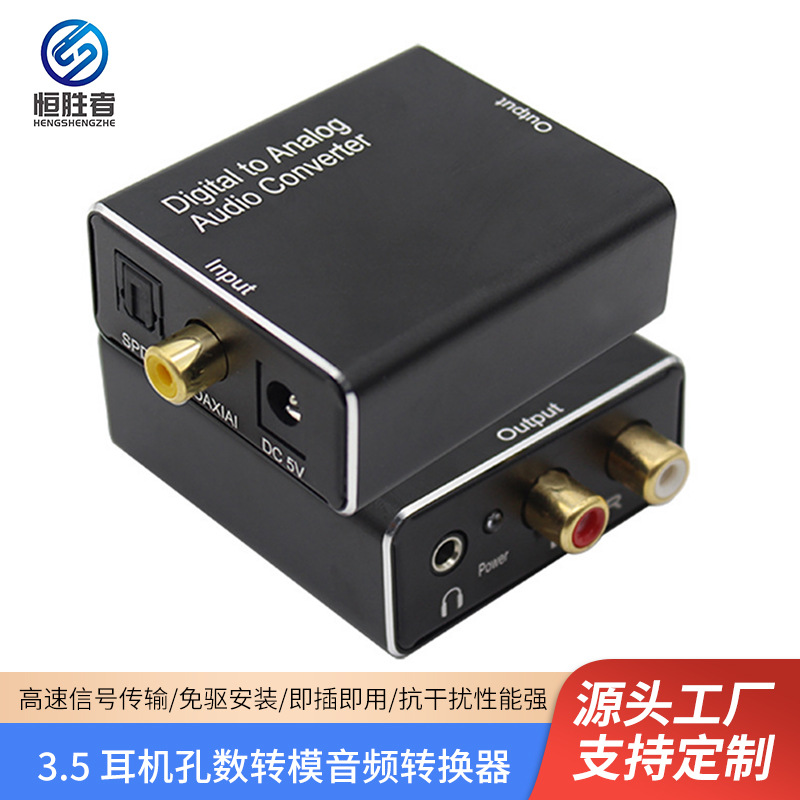 Konverter koaksial audio Digital ke analog 3.5 serat optik ke spdif analog ke dekoder cangkang aluminium hitam