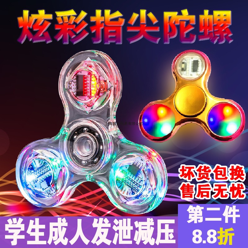 Mainan Siswa Paduan Jari Kecil Tiga Daun Warna Hitam Dekompresi Ujung Jari Bersinar Tangan Berputar Teknologi Gyro Gyro untuk Menuangkan