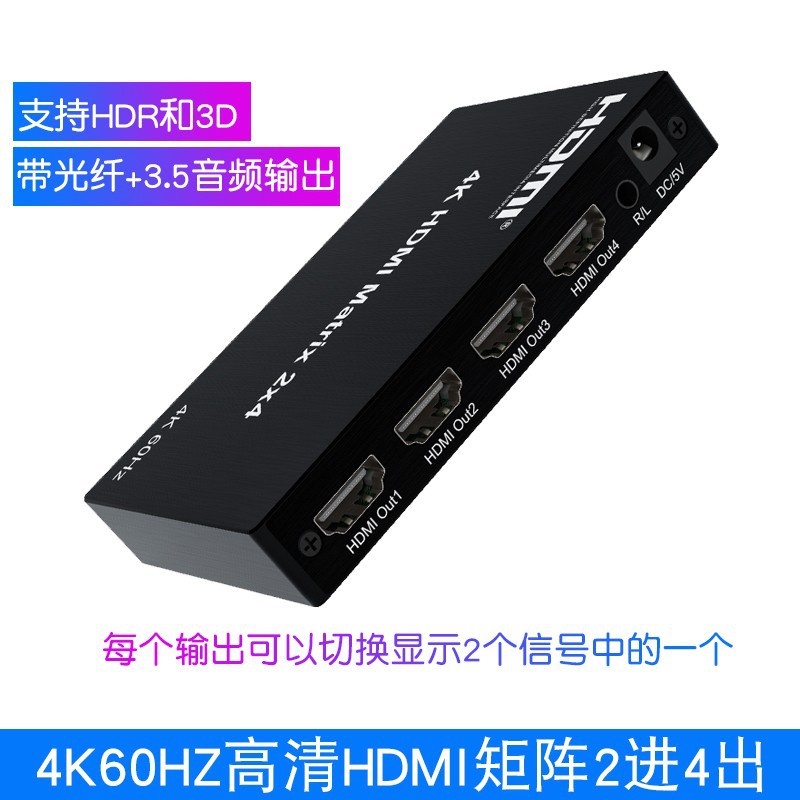 Versi hdmi2.0 komputer switcher Matrix 2 in 4 out 4k60hz HD Dukungan hdr dengan pemisahan audio serat optik