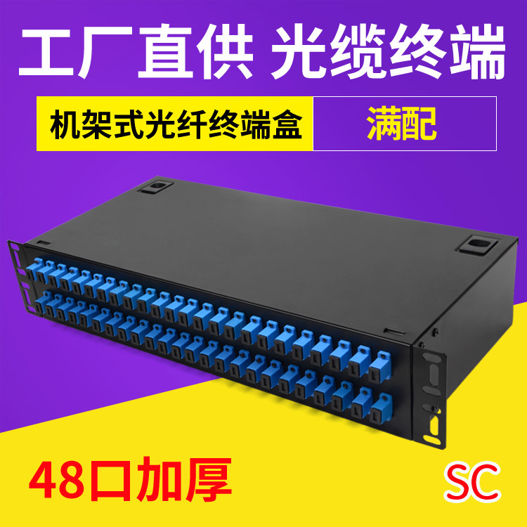 Kotak terminal kabel optik 48-port SC kotak sambungan fusi serat optik kepala persegi besar rak kabinet 19 inci dengan flensa kuncir
