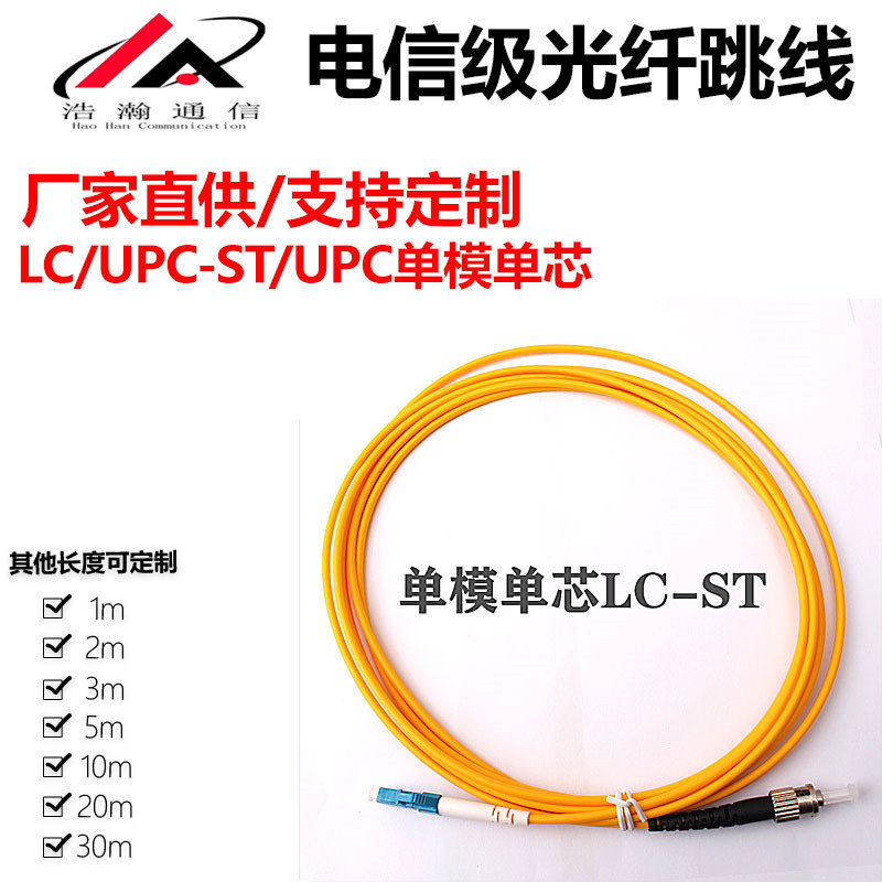 Jumper serat optik kelas telekomunikasi LC/UPC-ST/UPC mode tunggal pigtail inti tunggal 1 m 3 m 5 M 10 m persegi kecil ke bulat