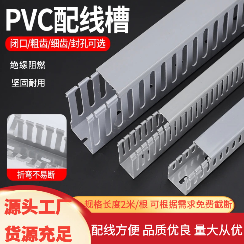 Trunking gigi tipis PVC plastik terpasang terbuka kabel trunking Arus lemah kabel trunking tahan api abu-abu berbentuk U gigi padat terbuka pvc trunking