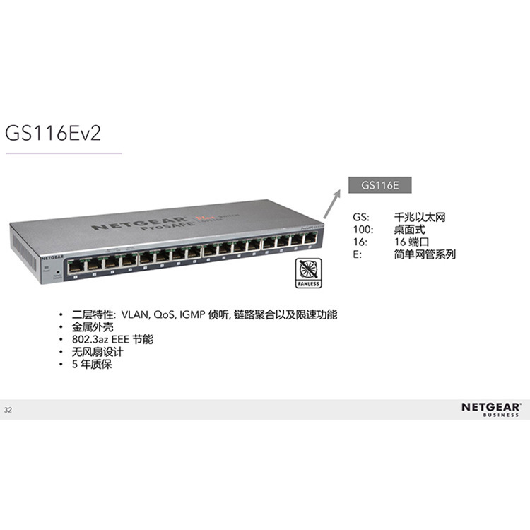 US NETCOM/NETGEAR GS116E V2 16-Port saklar manajemen jaringan gigabit penuh mendukung QoS/VLAN