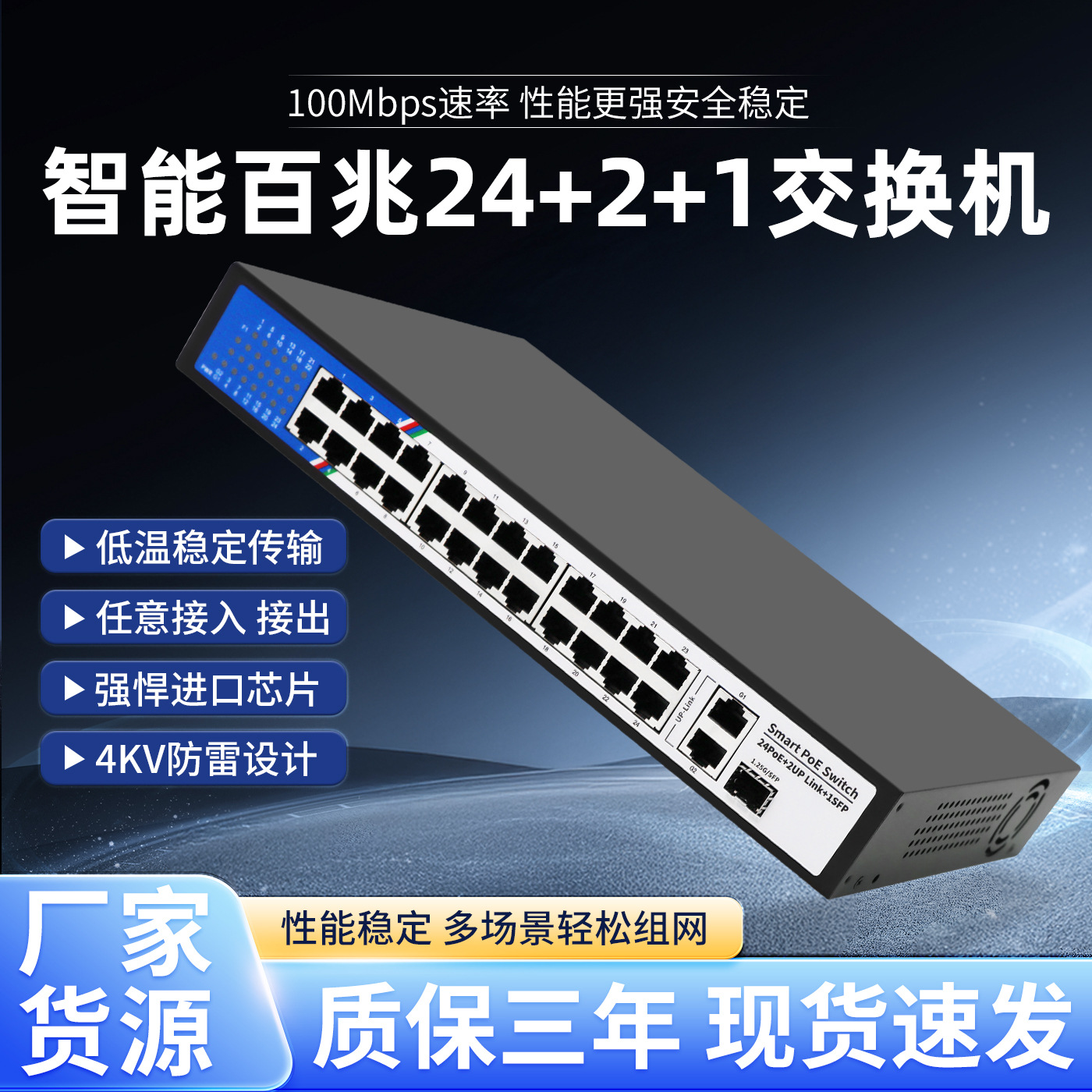 100 m 24 + 2 + 1SFP PoE monitor sakelar 52V kamera standar nasional power supply daya tinggi POE splitter