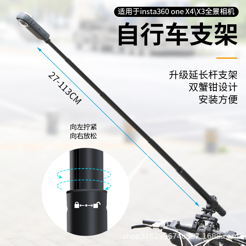 Braket berkendara sepeda cocok untuk insta360, Aksesori pegangan terintegrasi tidak terlihat kamera panorama X4/X3/X2