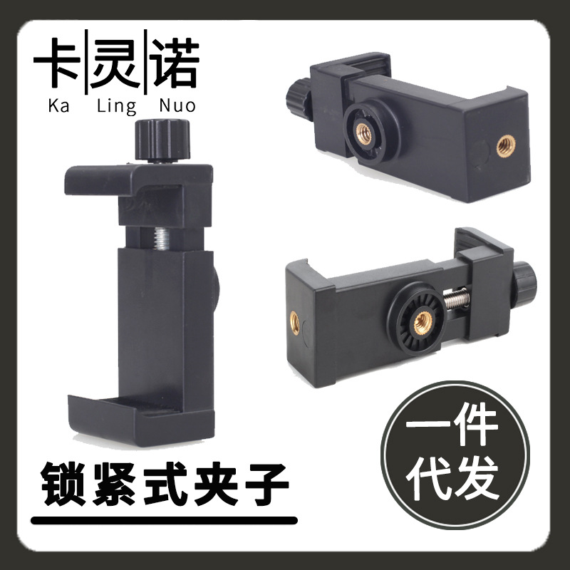 Satu kata E klip ponsel lubang ganda, braket tripod kamera olahraga menembak vertikal dan horizontal, 1/4 sekrup mengencangkan siaran langsung aksesoris tetap