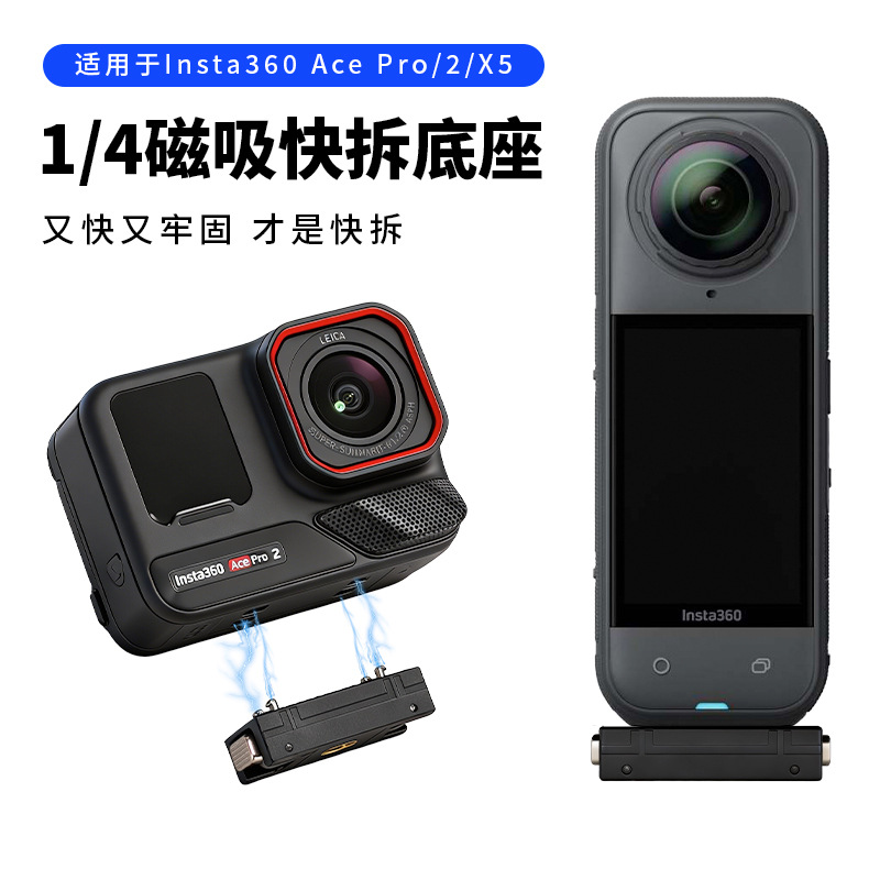 insta360Ace Pro2/ X5金属磁吸快拆转接底座运动相机两爪支架配件