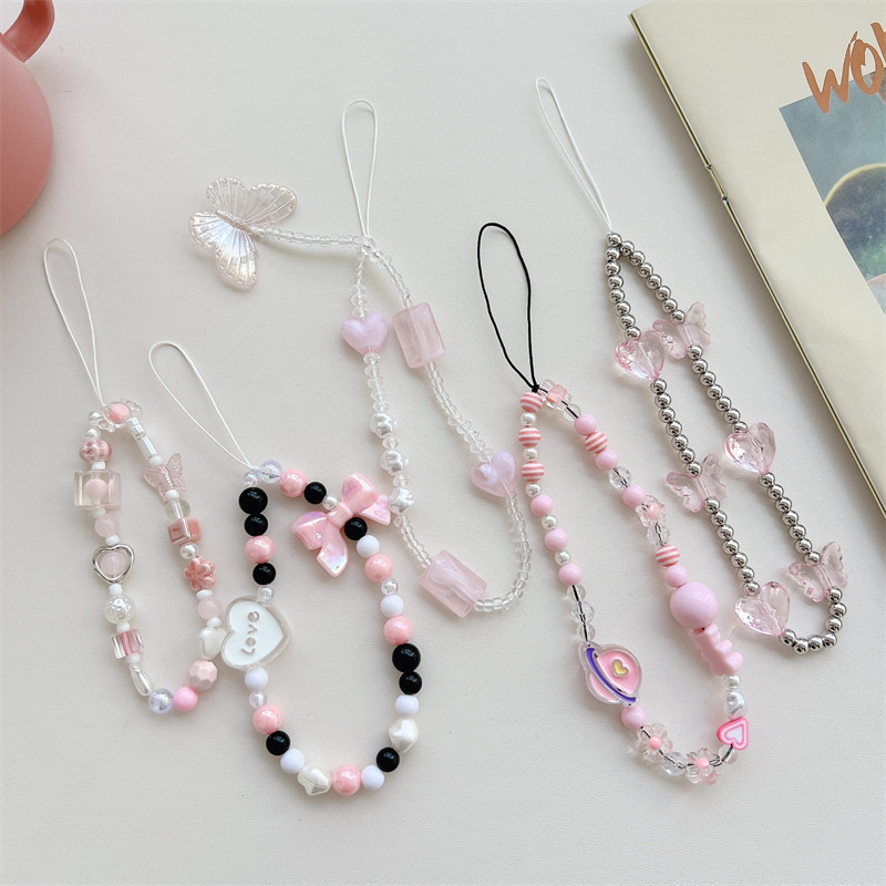 Casing Ponsel Manik-Manik Buatan Tangan Kartun Instagram Gantungan Kunci Rantai Tangan DIY Tas Ransel Ccd Aksesori Gantung Anti Hilang