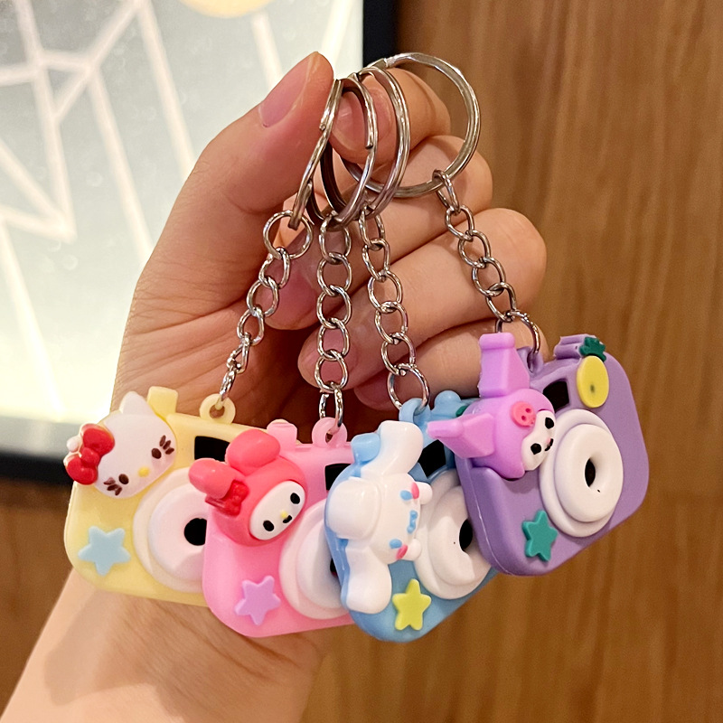 Kamera lucu kreatif Sanrio gantungan kunci kartun tas sekolah liontin kios dorong hadiah kecil anak-anak hadiah kecil