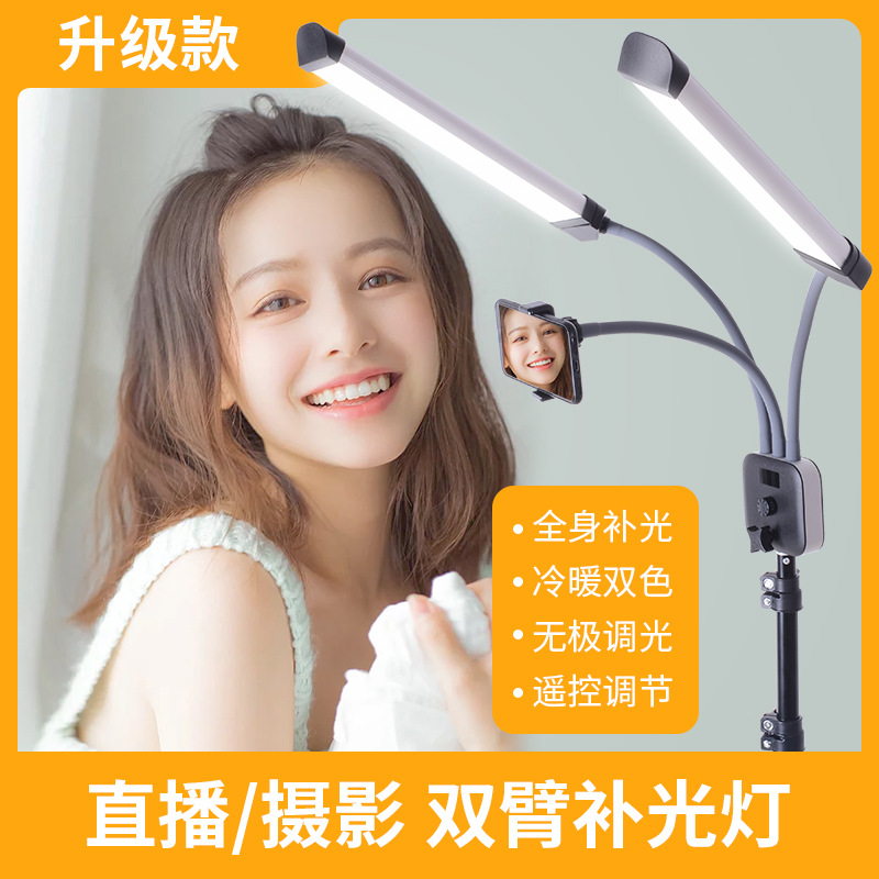 Lampu siaran langsung lengan ganda anchor, lampu kecantikan ponsel selfie pencahayaan fotografi cahaya tembak ganda lintas batas diskon besar