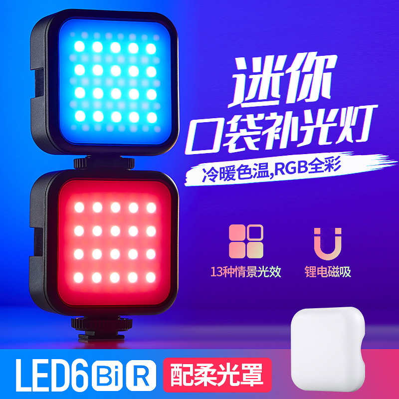 Shenniu LED6R/6Bi fotografi cahaya penuh, fotografi SLR mini kecil genggam saku portabel warna RGB