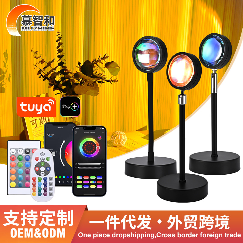 Lampu suasana matahari terbenam, cahaya fotografi Internet selebriti lampu matahari tenggelam, lampu latar belakang langsung mengisi kamar tidur proyeksi lampu suasana matahari terbenam