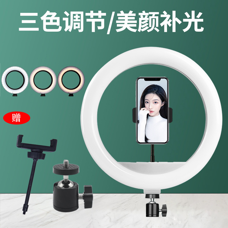 Lampu cincin tiga warna, 10 inci Live fotografi LED selebriti Internet jangkar selfie lampu kecantikan 6 inci/14 inci