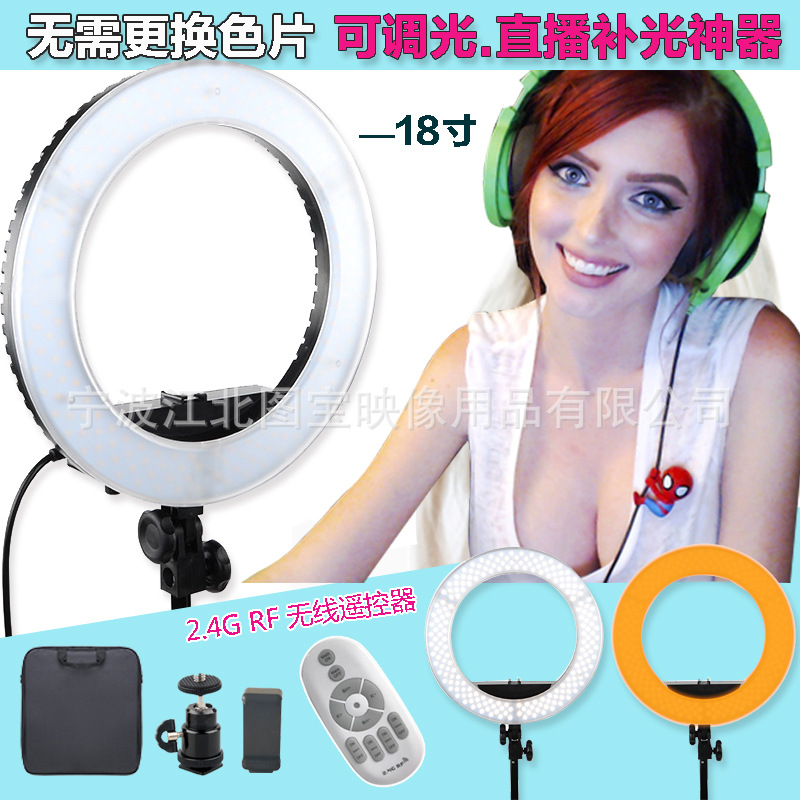 Lampu cincin fotografi remote control RL-18, lampu cincin cahaya untuk fotografi remote control 55W, lampu tembak kecantikan jangkar rias wajah selfie
