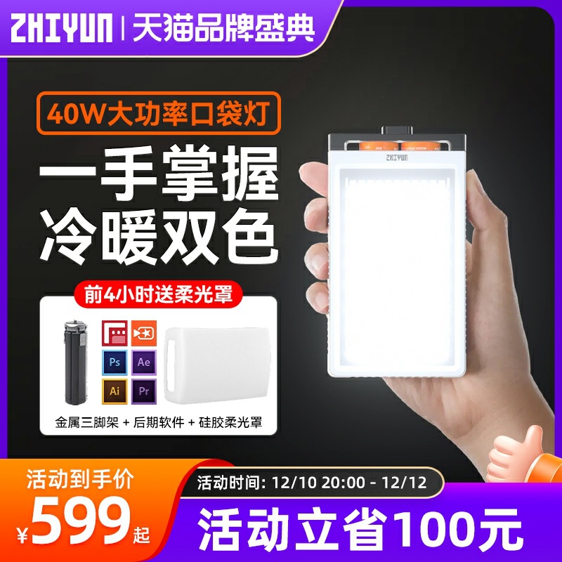 Zhiyun M40 lampu fill Mini portabel, cahaya pengisi genggam stik fotografi ponsel siaran langsung pencahayaan fotografi luar ruangan