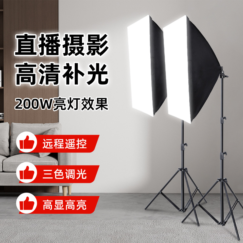 Set Lampu Fotografi Siaran Langsung Lampu Tambahan Video Kotak Cahaya Lembut Kecantikan Memoles Ruang Siaran Langsung Pemotretan Pakaian potret Dalam Ruangan