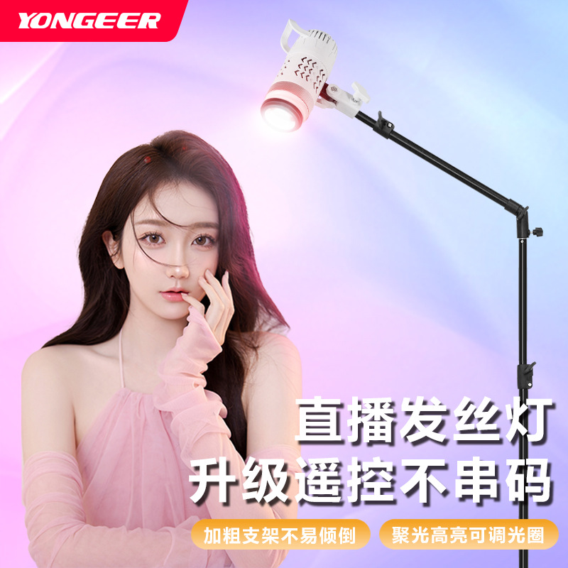 Lampu sorot siaran langsung rambut berkilau gadis cantik lampu khusus E27 latar belakang suasana fokus penyesuaian lampu pengisi 110V lampu sorot