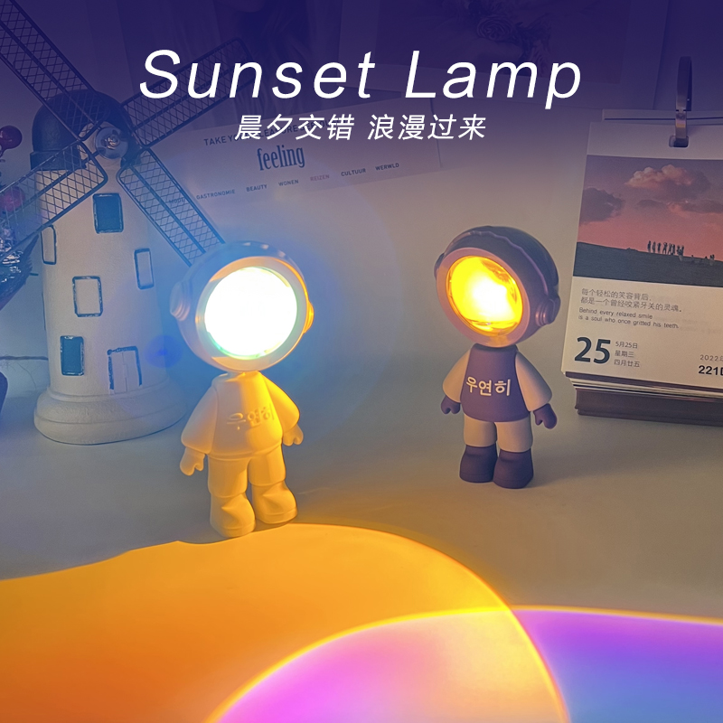 Lampu samping tempat tidur USB lampu fotografi kamar tidur suasana selebriti Internet lampu matahari terbenam proyeksi astronot lampu malam hadiah