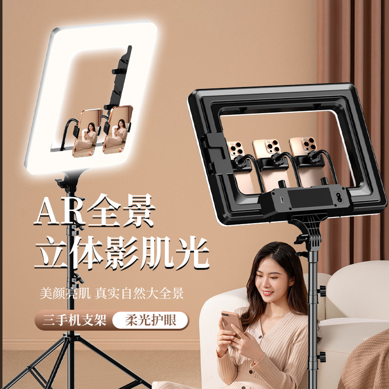 Lampu Pengisian Desktop Siaran Langsung Ponsel Jangkar Foto Portabel Rias Wajah Universal Tiga Warna Adjustable Satu Bagian