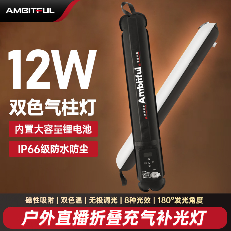 Ambitful Zhijie GC12 Lampu Kolom Udara Luar Ruangan Siaran Langsung Portabel Pemotretan Portabel Lampu Isi Cahaya Genggam