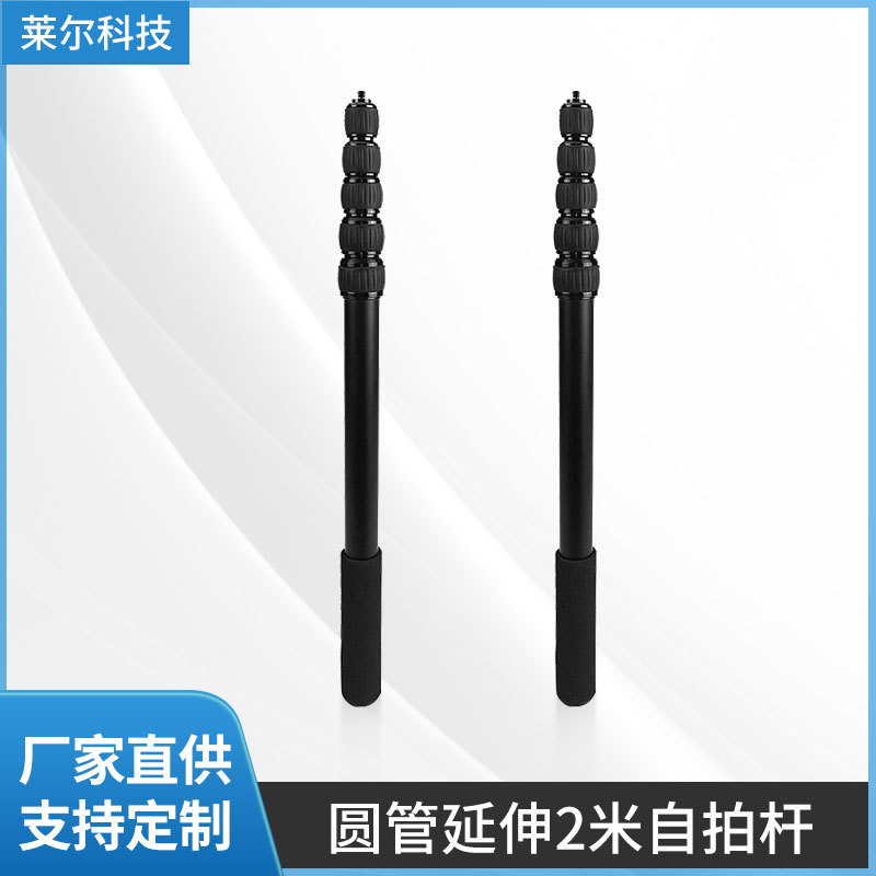 Tongkat selfie 2m, tangkai teleskopik aluminium Aloi, mikrofon rekaman langsung ponsel, batang ekstensi 2m
