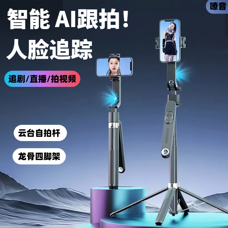 AI Yuntai Penelusuran Wajah dan Penfoto Selfie Tripod Empat Kaki Paduan Aluminium Tok Tok Braket Ponsel Kamera Langsung Model Baru