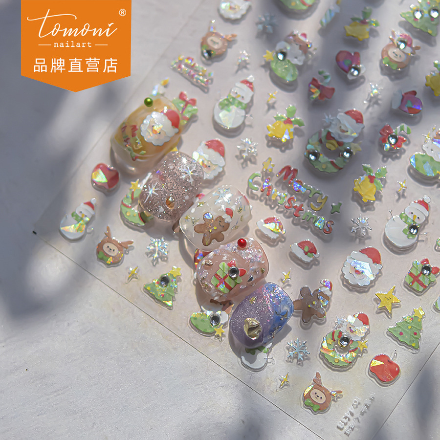 tomoni晶钻美甲贴纸爆款文具儿童指甲贴圣诞雪花贴纸美甲辅助贴纸