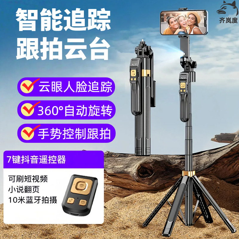 C12ai Penahan Hak Orang Cerdas Wajah Tongkat Swafoto Anti-Shake 1.8 m 360 Penopang Empat Kaki Berputar Otomatis