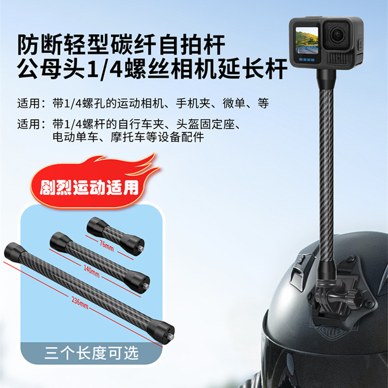 Batang Perpanjangan Serat Karbon Paduan Aluminium 1/4 Braket Tetap Kepala Ganda Kamera Olahraga Dudukan Adaptor Fotografi Perpanjangan Ponsel