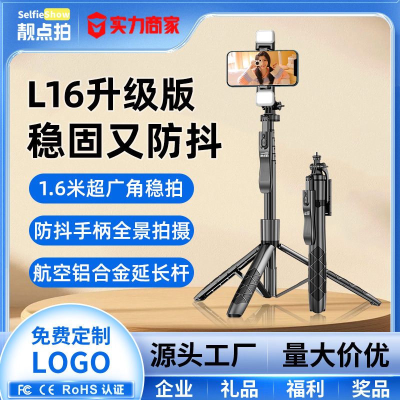 2024 TikTok tongkat selfie, penstabil remote kontrol Bluetooth, braket kamera PTZ genggam, empat tripod langsung ponsel