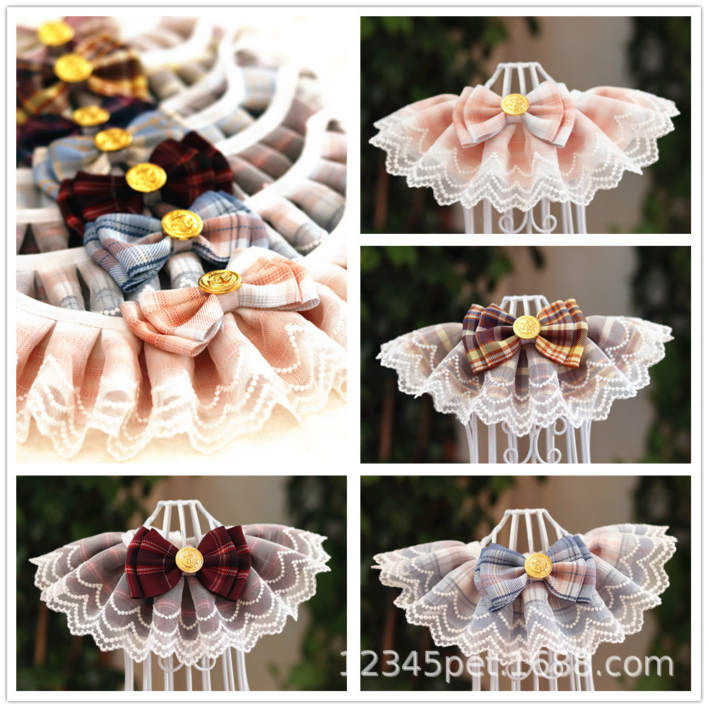 Celemek renda hewan peliharaan, bib renda anjing kucing kerah renda JK kotak-kotak bib