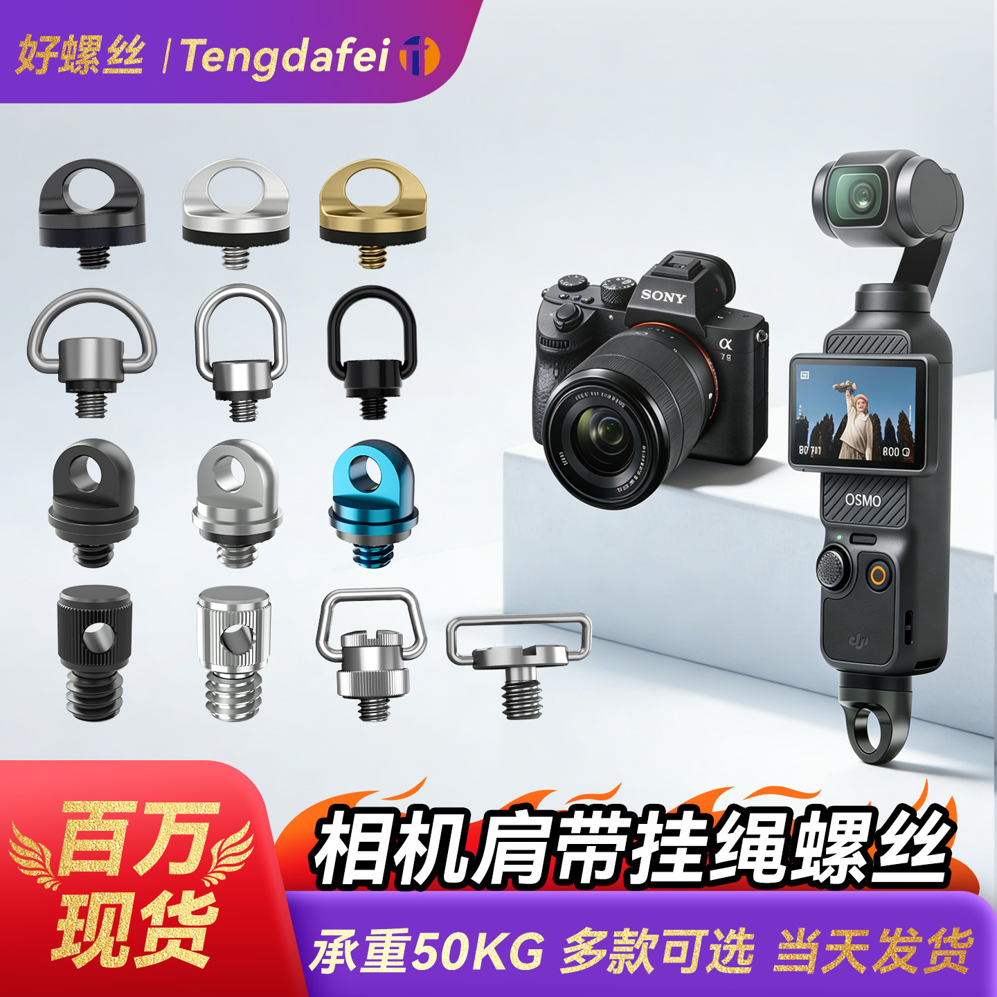 Sekrup lanyard tali bahu kamera 1/4, Aksesori sekrup kamera olahraga pengangkat putaran tangan ekor tongkat selfie