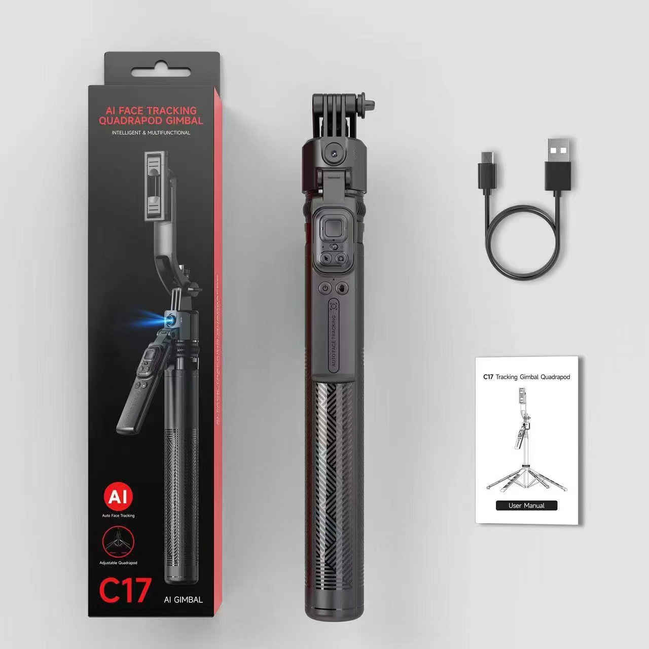 Tongkat Selfie Ponsel Baru Lintas Batas C17 Penghitung AI Cerdas Penghilang Guncang Empat Kaki Alat Pemotretan Otomatis
