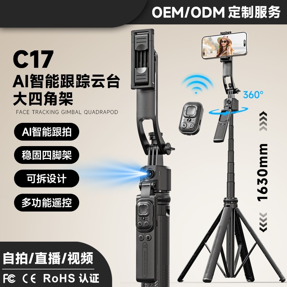 2025 Baru Cerdas AI PTZ Tongkat Selfie Pelacakan Wajah Artifak Pelacakan Otomatis Berputar 360 Derajat Anti-goyang