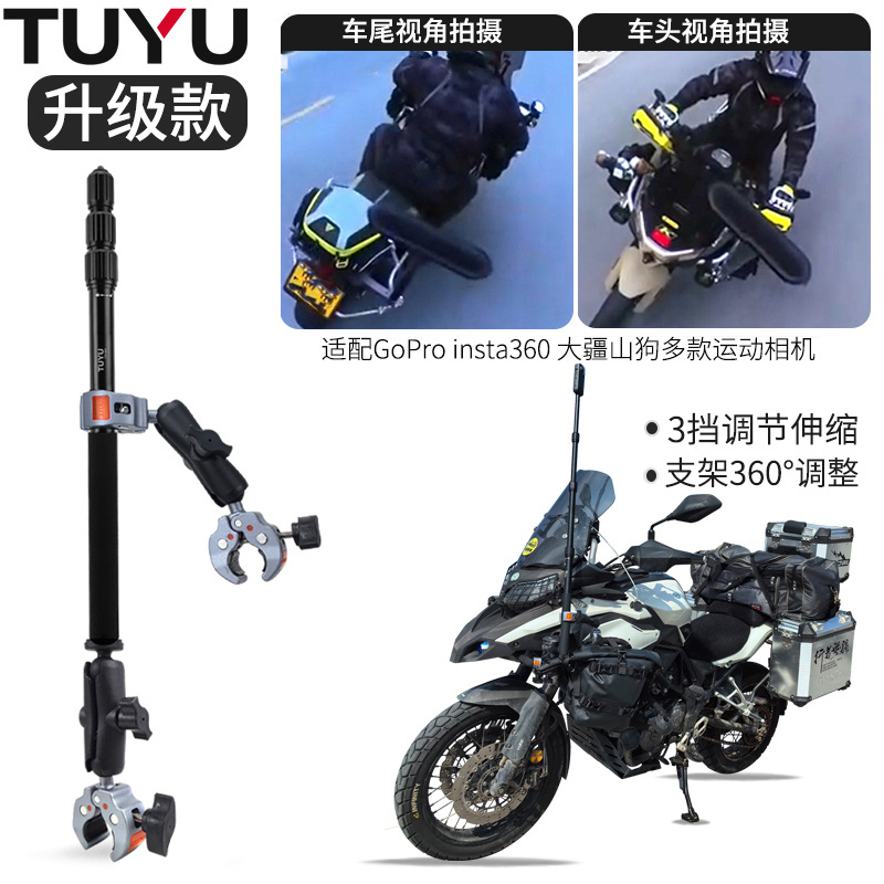 Klem kuat untuk berkendara sepeda motor, tongkat swafoto bahan Aloi aluminium, klem kuat berkepala ganda, braket tetap cocok untuk kamera olahraga