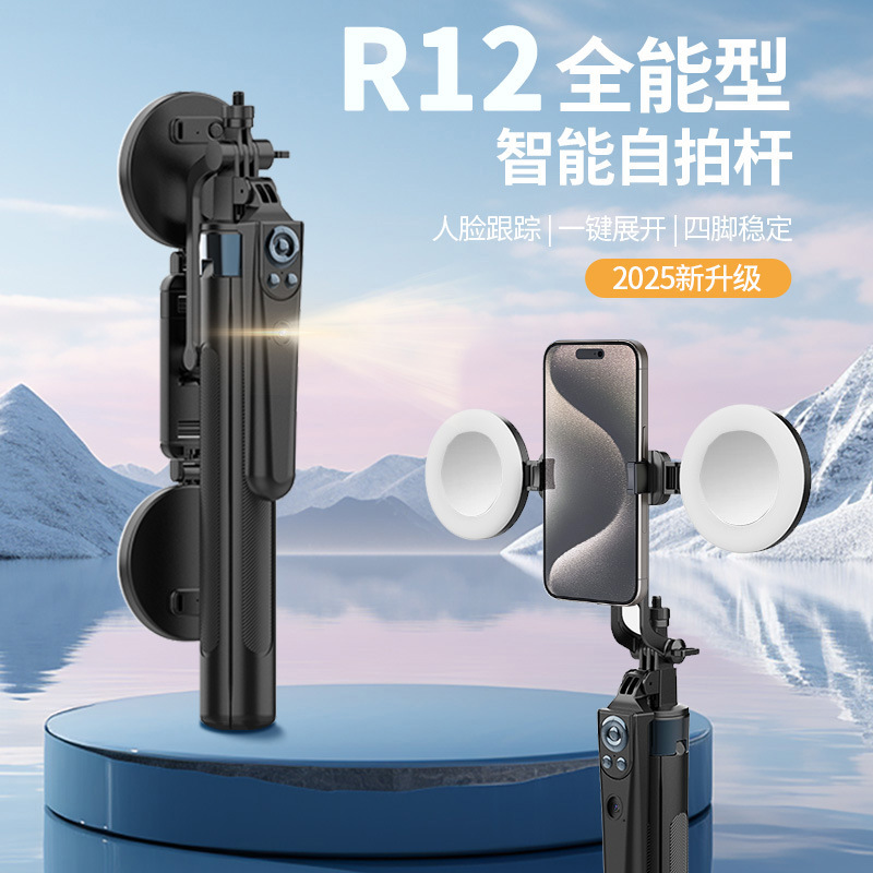 Tongkat Selfie kepala, tongkat selfie AI smart follow-up rotasi 360 derajat horizontal dan vertikal menembak pemegang ponsel pelacakan pengenalan wajah