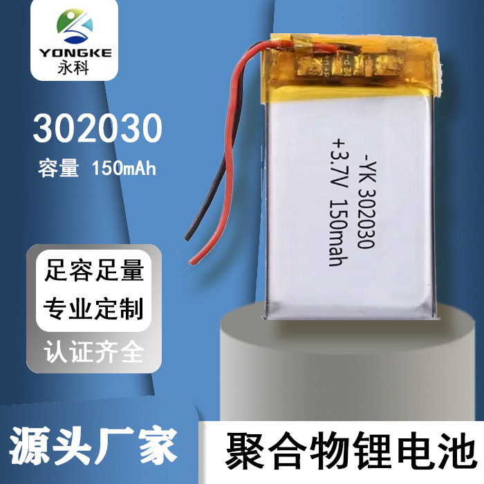 302030 baterai lithium polimer 150mah lampu malam tongkat selfie cermin rias instrumen isi ulang air produsen baterai lithium isi ulang