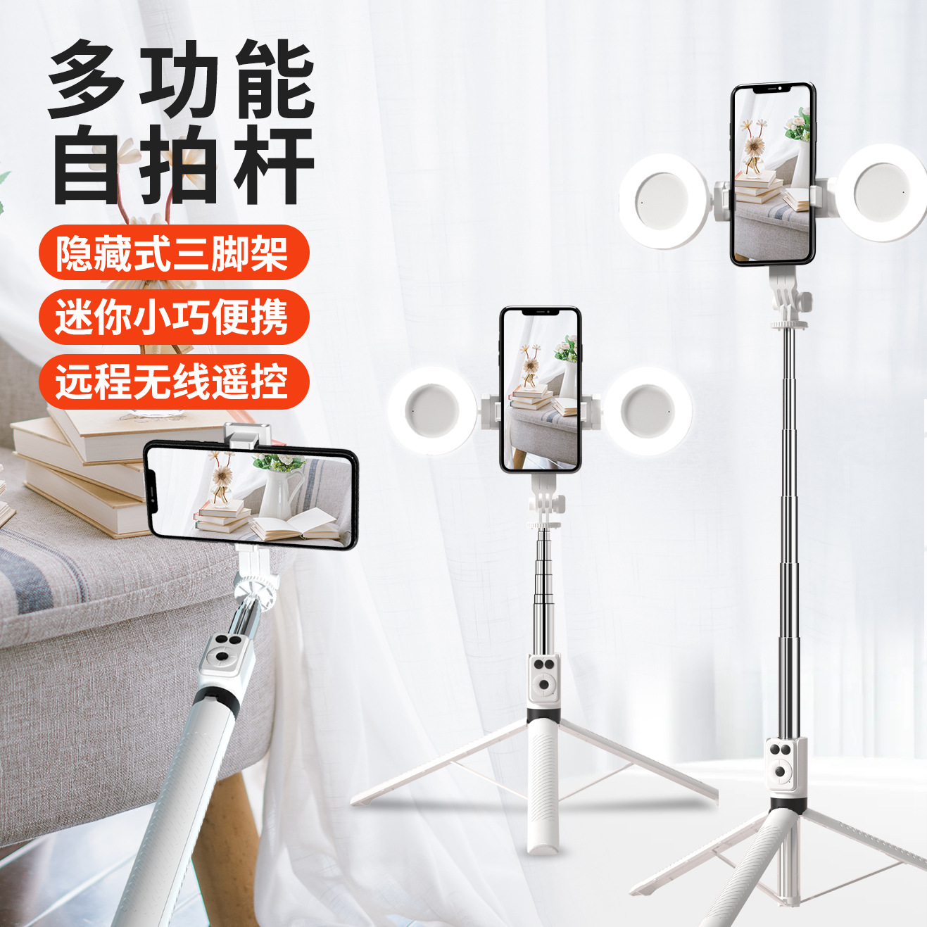Stand aksesori peralatan streaming langsung seluler dengan lampu pengisi cahaya, cocok untuk selebriti internet, fotografi, stand multifungsi Bluetooth untuk pemotretan profesional.