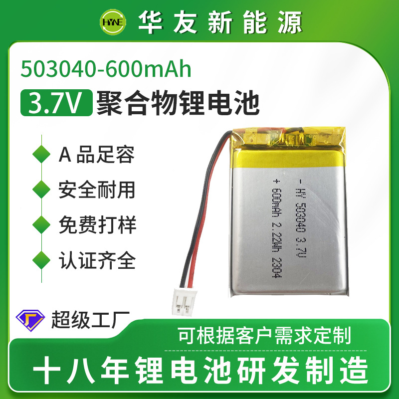 Baterai litium polimer 503040, baterai lanskap 600mAh baterai lithium tongkat menembak