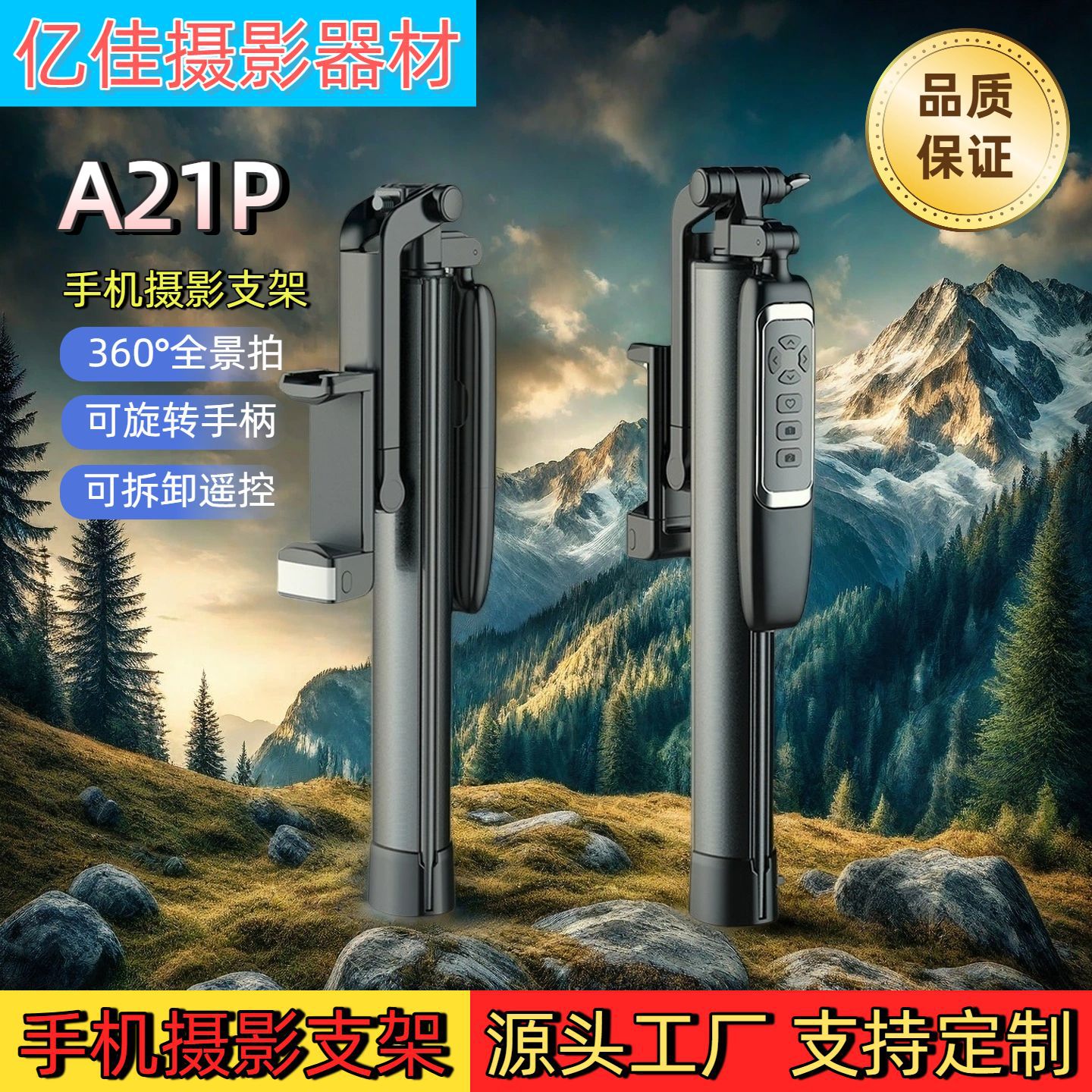 Tongkat selfie ponsel, A21P diperpanjang 1.58 Bluetooth remote control mengisi cahaya lantai terintegrasi siaran langsung braket tripod